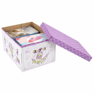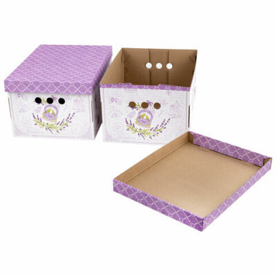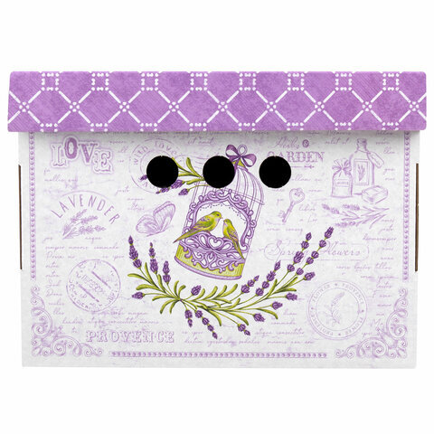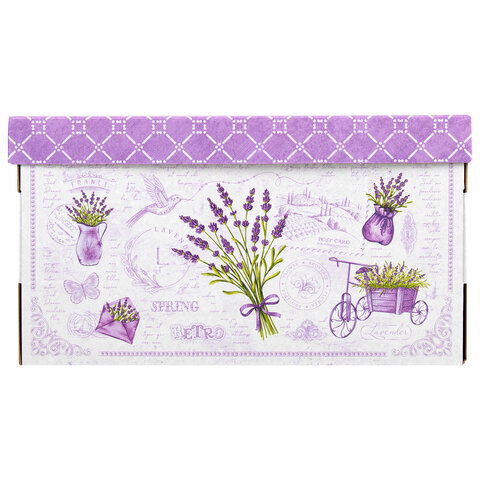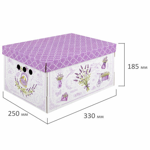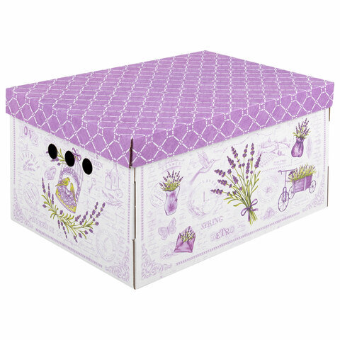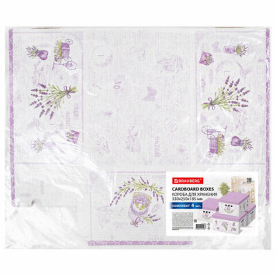Короб для хранения из плотного микрогофрокартона 330х250х185 мм, КОМПЛЕКТ 4 шт., BRAUBERG HOME "Лаванда", 271813