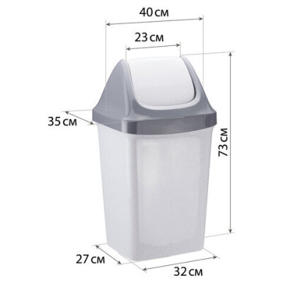Ведро мусорное с КРЫШКОЙ (качающейся) 50 литров,"СВИНГ", 73х40х35 см, серое, IDEA, М 2464, М2464
