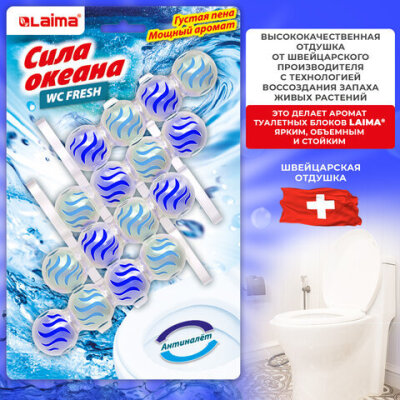 Туалетный блок LAIMA "Сила океана 3 в 1" обладает ярким ароматом и сильной формулой, очищающей унитаз при каждом смывании.