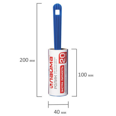 Ролик для чистки одежды и удаления ворса LAIMA, 20 листов, экстра липкость, европодвес, 605397