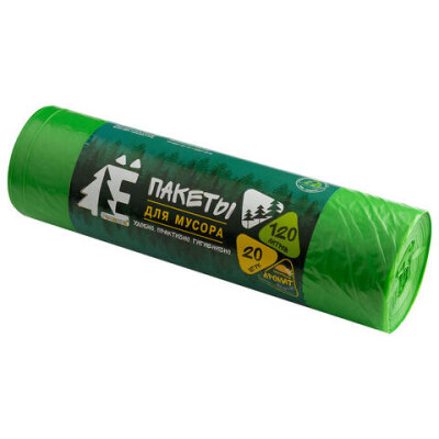 Мешки для раздельного сбора мусора 120 л, зеленые, в рулоне 20 шт., ПВД 20 мкм, 70х110 см, РОМАШКА, ЕЛР-ВР-120З