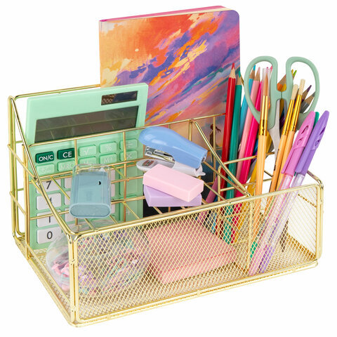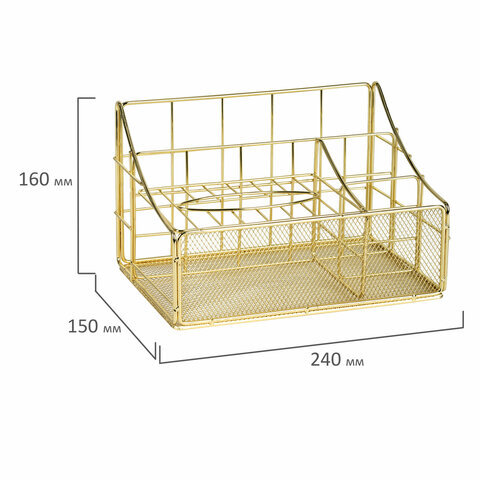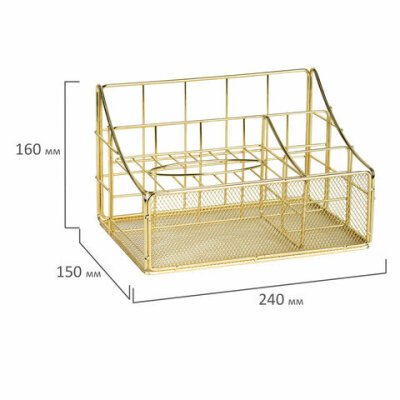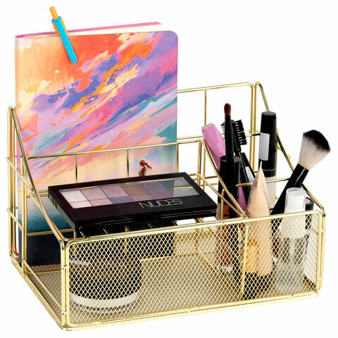 Органайзер для косметики и мелочей металлический 4 секции, MONTE VITA (МОНТЕ ВИТА), 160х240х150 мм, золото, 272479