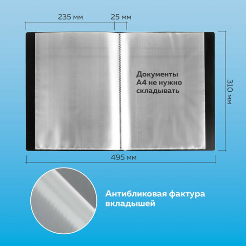 Папка 40 вкладышей BRAUBERG стандарт, черная, 0,7 мм, 221604