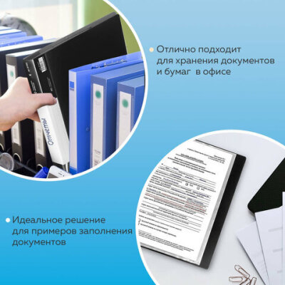 Папка BRAUBERG "Стандарт" классического черного цвета отлично подходит для хранения документов, составления каталогов, меню и т.п.