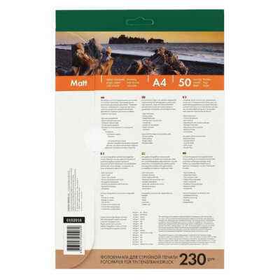 Фотобумага матовая, А4, 230 г/м2, односторонняя, 50 листов, LOMOND, 0102016