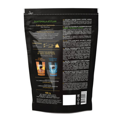 Jardin Guatemala Atitlan - ровный и сбалансированный растворимый сублимированный кофе высшего качества, обладает мягким вкусом со сладкими нотами.