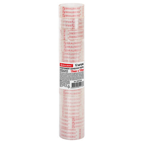 Клейкие ленты 19 мм х 10 м канцелярские BRAUBERG, комплект 12 шт., прозрачные, 223124