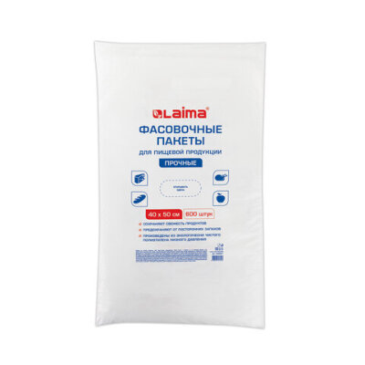 Пакеты фасовочные 40х50 см КОМПЛЕКТ 600 шт., ПНД 12 мкм, ПРОЧНЫЕ, евроупаковка, LAIMA, 608531