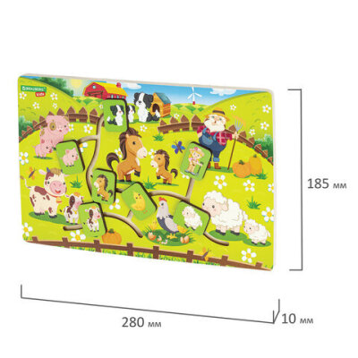 Игра-лабиринт деревянная развивающая "Животные в деревне", с бегунками, BRAUBERG KIDS, 665264
