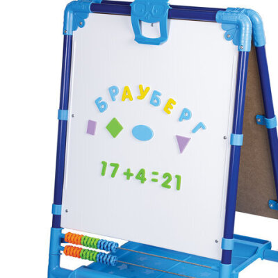 | Комплектация | держатель для мела, набор цифр, знаков и букв, полка для принадлежностей, цветные мелки |