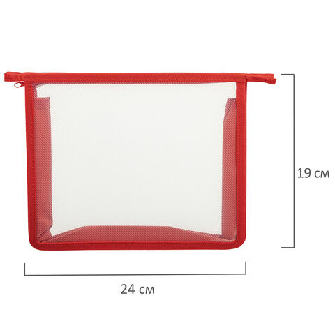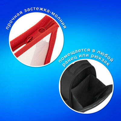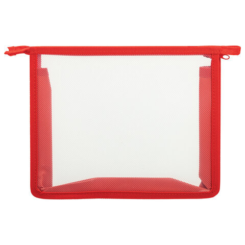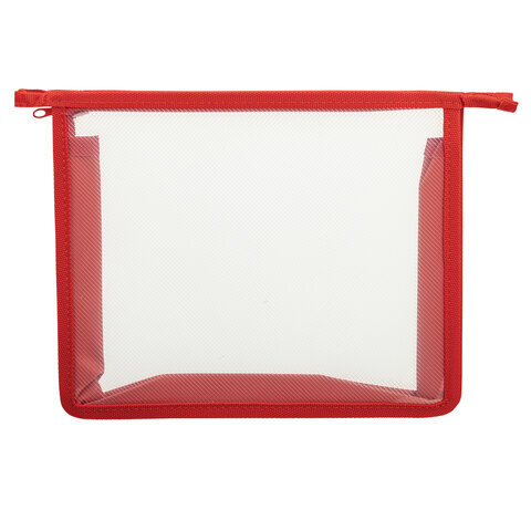 Папка для тетрадей ПИФАГОР А5, пластик, молния сверху, прозрачная, красный, 272114
