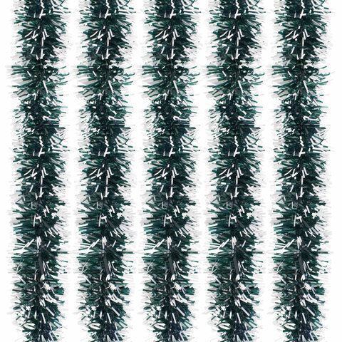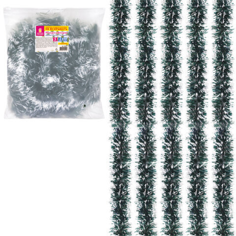 Мишура КОМПЛЕКТ 4 штуки + 1 в подарок!, диаметр 50 мм, длина 2 м, зеленая с белыми кончиками, 592215