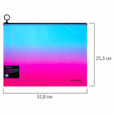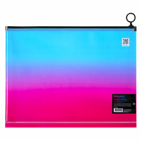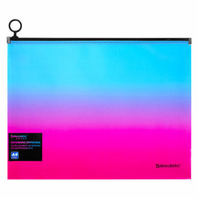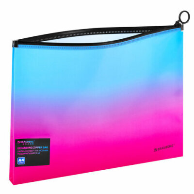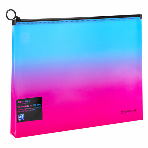 Папка-конверт расширяющаяся на молнии BRAUBERG "Grade", А4, до 300 листов, розово-голубой градиент, 0,18 мм, 271967