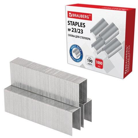 Скобы для степлера №23/23, 1000 штук, СВЕРХПРОЧНЫЕ, от 110 до 190 листов, BRAUBERG, 227718