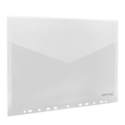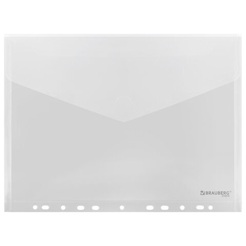 Папка-конверт с перфорацией А4, BRAUBERG "UNIVERSAL", КОМПЛЕКТ 10 шт., прозрачная, 0,15 мм, 273078