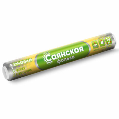 Фольга пищевая 29 см х 10 м, 11 мкм, ПРОЧНАЯ, САЯНСКАЯ ФОЛЬГА в пленке, Классическая У10П-290х35