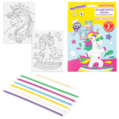 Картина из цветного песка ЮНЛАНДИЯ - это интересный способ развития мелкой моторики, цветового восприятия и фантазии ребёнка, а также блестящая картина своими руками! Для создания аппликации не требуются ножницы и клей, всё необходимое входит в набор.