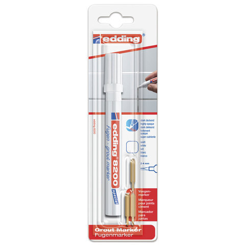 Маркер для затирки плиточных швов EDDING 8200, БЕЛЫЙ, 2-4 мм, запасные наконечники, E-8200/49
