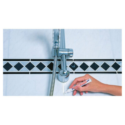 • В состав чернил для затирки швов входит фунгицид, предотвращающий образование плесневого грибка и предотвращающий проникновение воды. Маркер предназначен для закрашивания, коррекции и придания более эстетичного вида кафельным швам.