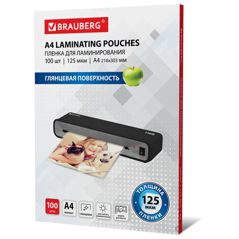Пленки-заготовки для ламинирования А4, КОМПЛЕКТ 100 шт., 125 мкм, BRAUBERG, 530803