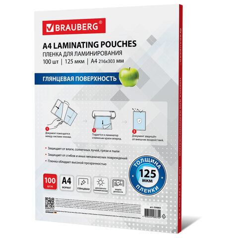 Пленка для ламинирования BRAUBERG надежно защитит документы от влаги, пыли, воздействия УФ-лучей и других внешних факторов.