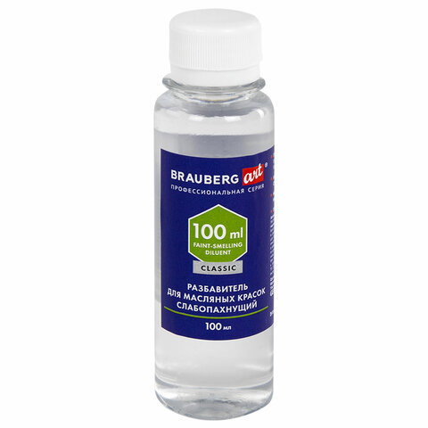 Разбавитель для масляных красок слабопахнущий, в бутылке BRAUBERG ART CLASSIC предназначен для разведения художественных масляных красок.