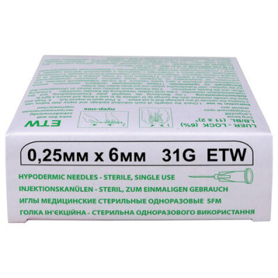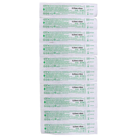 Иглы для мезотерапии и микроинъекций одноразовые SFM 0,25 х 6 - 31G, КОМПЛЕКТ 50 шт.