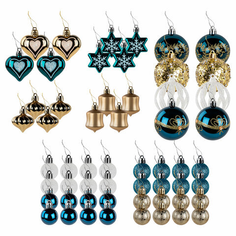 Шары ёлочные НАБОР 56 предметов, "Magic Box", бирюзовый/золото, пластик, ЗОЛОТАЯ СКАЗКА, 592174