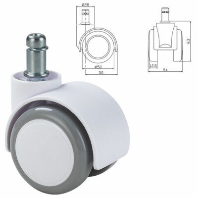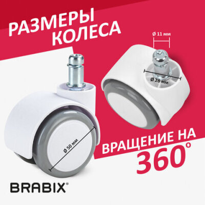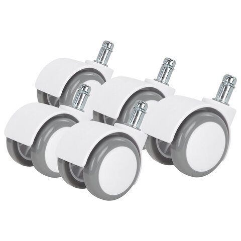 Колеса (ролики) BRABIX для кресла, прорезиненные, SLIM, КОМПЛЕКТ 5 шт., шток d 11 мм, белые, 533086