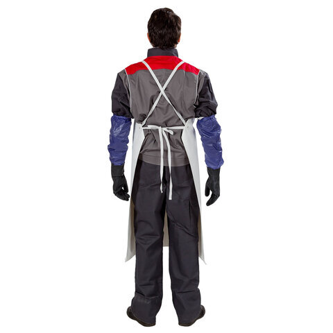 Прочный износоустойчивый фартук из уплотненного поливинилхлорида (ПВХ) предназначен для защиты от брызг кислот и щелочей концентрации до 80%, продуктов нефтепереработки, масел, жиров, лаков и красок на их основе при выполнении средних и тяжелых работ.
