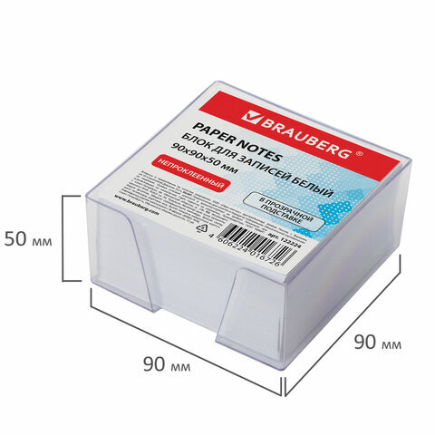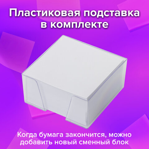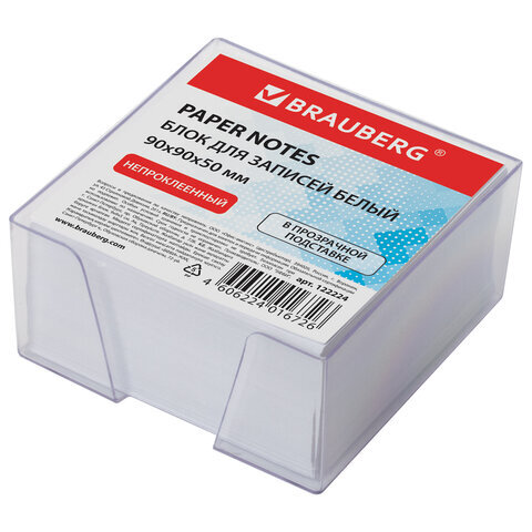 Блок для записей BRAUBERG в подставке прозрачной, куб 9х9х5 см, белый, белизна 95-98%, 122224