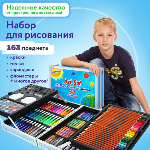Набор ЮНОГО ХУДОЖНИКА "Cosmo" для рисования и творчества в кейсе ЮНЛАНДИЯ, 163 предмета, 664634
