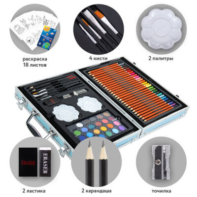 Набор юного художника ЮНЛАНДИЯ отлично подойдет для первых шагов в рисовании. В красочном кейсе есть все самые необходимые предметы для развития творческих способностей ребенка. Набор хорошо развивает усидчивость, воображение, образное мышление ребенка.