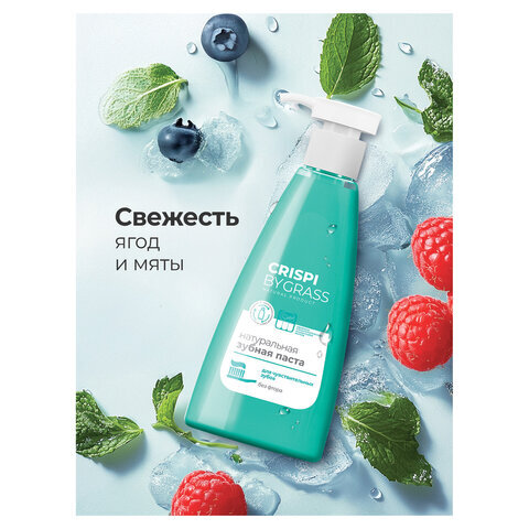 Зубная паста 250 мл, CRISPI by GRASS, "Для чувствительных зубов", без фтора, дозатор, 125723