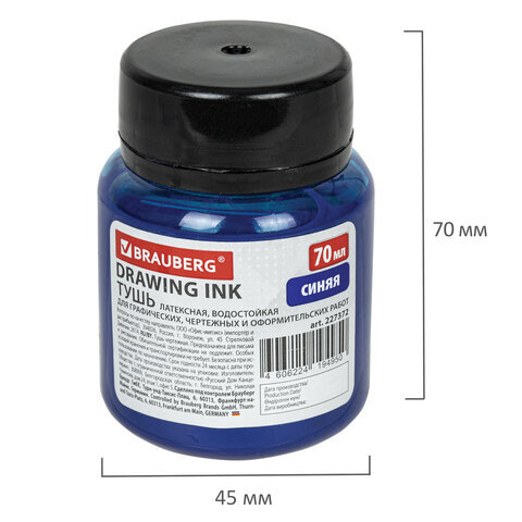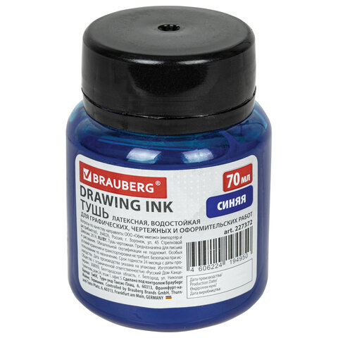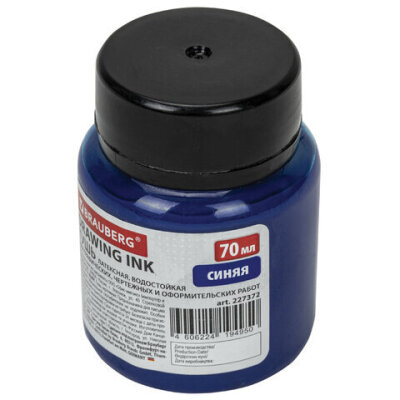 Тушь чертежная BRAUBERG, 70 мл, синяя, водостойкая, латексная (черчение, графика, оформление), 227372