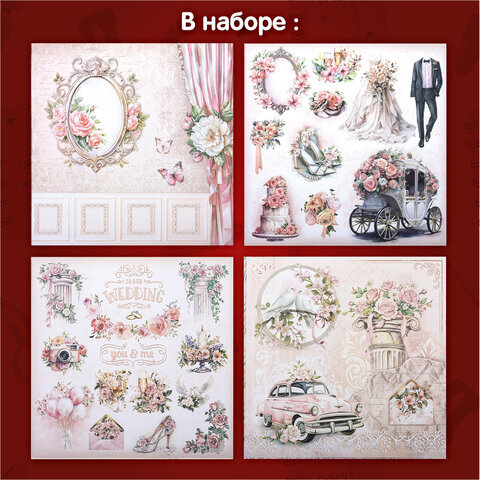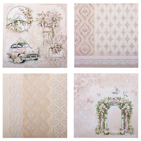 Бумага для скрапбукинга 30х30 см "Свадебный", двусторонняя, 12 листов, 180 г/м2, ОСТРОВ СОКРОВИЩ, 665435