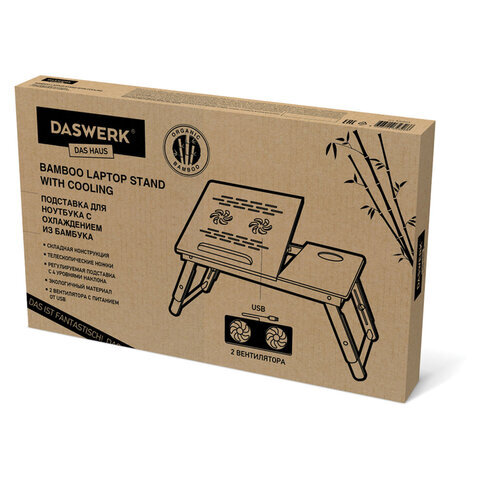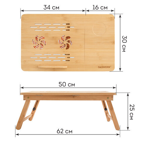 Столик БАМБУКОВЫЙ складной для ноутбука/завтрака, с охлаждением, DASWERK (ДАСВЕРК), 532583