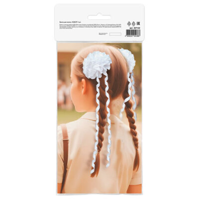 Банты для волос НАБОР 2 шт., 10 см на резинке, белый, АССОРТИ, MONTE VITA (МОНТЕ ВИТА), 457122