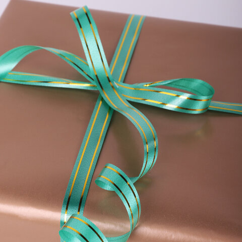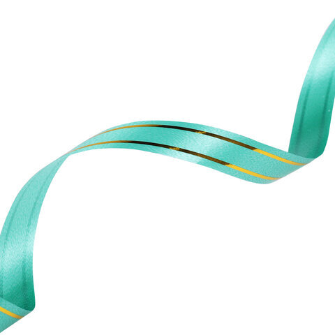 Лента упаковочная декоративная для подарков, золотые полосы, 12 мм х 45 м, зеленая, ЗОЛОТАЯ СКАЗКА, 591826