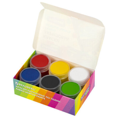 Краски акриловые по ткани 6 цветов по 20 мл, BRAUBERG HOBBY, 192441