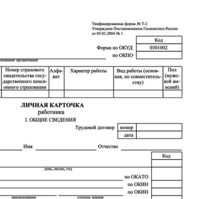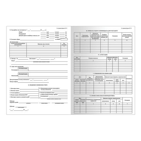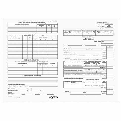 Бланк бухгалтерский, офсет плотный, "Личная карточка работника", форма Т-2, А4, 2 л., КОМПЛЕКТ 50 шт., STAFF, 130201