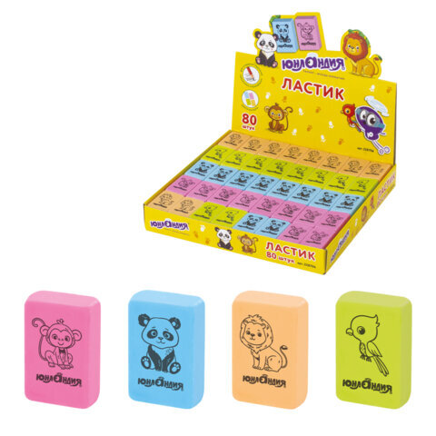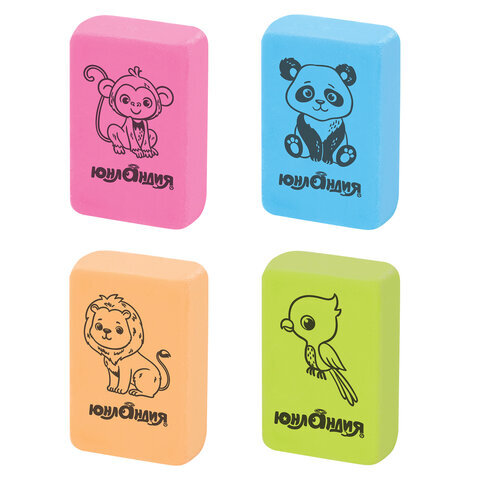 Ластик ЮНЛАНДИЯ "Зверушки", 28х18х10 мм, цвет ассорти, прямоугольный, 228706