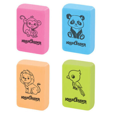 Ластик ЮНЛАНДИЯ "Зверушки" предназначен для удаления надписей, сделанных чернографитным карандашом.