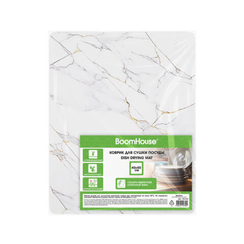 Коврик для сушки посуды NANO 40х50 см, МРАМОР БЕЛЫЙ влаговпитывающий, нескользящий, BOOMHOUSE (БумХаус), 701164