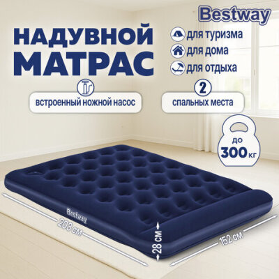 Надувной матрас 152х203х28 см, встроенный ножной насос, до 300 кг, BESTWAY, 67226