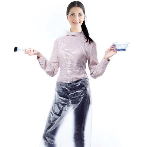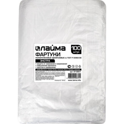 Фартуки полиэтиленовые, КОМПЛЕКТ 100 шт., одноразовые, размер 68 см х 110 см, ЭКСТРА, плотность 16 мкм, LAIMA, 610851