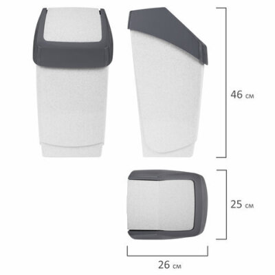 Ведро мусорное с КРЫШКОЙ (качающейся) 15 литров, "ХАПС", 46х26х25 см, серое, IDEA, М 2471