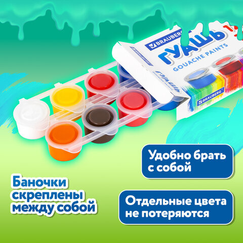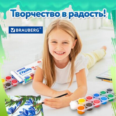Гуашь BRAUBERG "PREMIUM" хорошо наносится на бумагу, картон, дерево, стекло, керамику. Идеальная краска для начинающих художников.