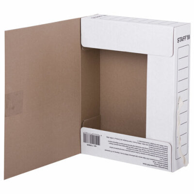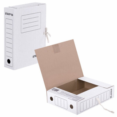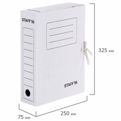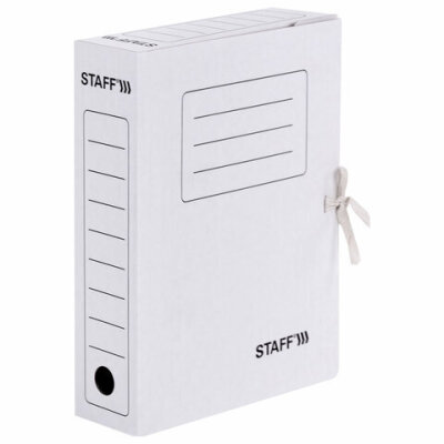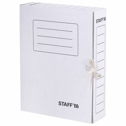 Папка архивная с завязками А4 (325х250 мм), 75 мм, до 700 листов, микрогофрокартон, БЕЛАЯ, STAFF, 128869