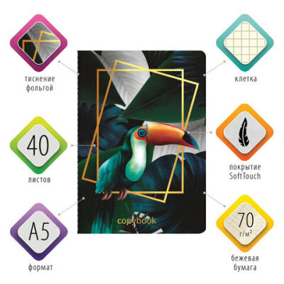 Тетрадь 40 л. в клетку обложка SoftTouch, фольга, бежевая бум. 70 г/м2, сшивка, А5 (147х210 мм), ТУКАН, BRAUBERG, 403775